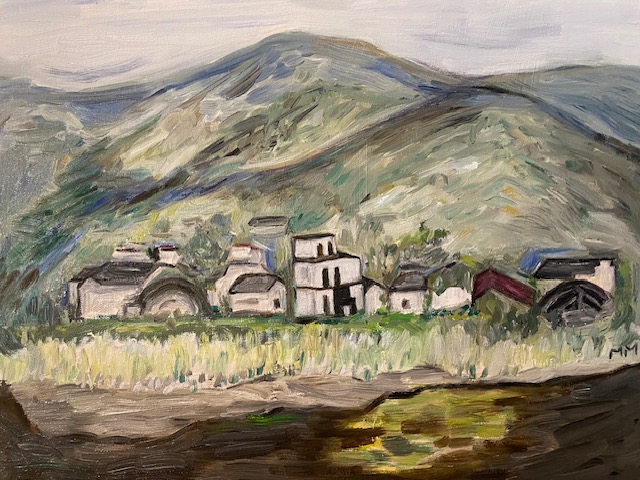 A village, 14″ by 18″ oil on canvas